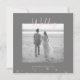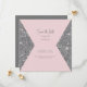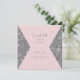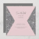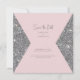 Silver Glitter and Pink Envelope Style Square. Photo Wedding Save the Date. Back with Bride and Groom Photo last names as well as the text Wedding. Silver Glitter confetti. Website. Black and white filter applied to photo.