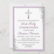 Silver Glitter Plum Purple First Holy Communion Invitation