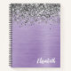 Silver Glitter Purple Brushed Metal Monogram Notebook