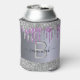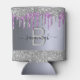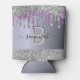 A cooler for a girly and glamourous party with the girls. A faux silver metallic looking background with elegant purple and faux silver glitter drips, paint dripping look. Personalise and add your name and monogram letter. The name is written in black with a modern hand lettered style script with swashes. Black and grey letters.