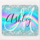Silver Glitter Rainbow Wave Aqua Ombre Monogram Mouse Pad