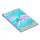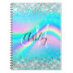 Silver Glitter Rainbow Wave Aqua Ombre Monogram Notebook