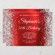Silver Glitter Red Foil Monogram 50th Birthday Invitation