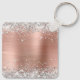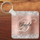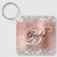 Silver Glitter Rose Gold Foil Fancy Monogram Key Ring
