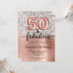 Create your own faux silver glitter and rose gold foil 50th birthday celebration invitation for her.