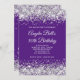 Silver Glitter Royal Purple Monogram 50th Birthday Invitation
