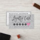 Elegant silver glitter sparkles script makeup hair pink heart loyalty card with modern hand lettering style brush typography on white , a simple, professional and minimalist card.