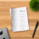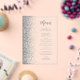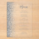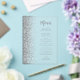 The left-hand edge of this elegant modern wedding menu features a faux silver glitter border. The customisable text combines grey handwriting script and sans serif font on a clear background.