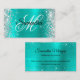 Create your own faux sparkly silver glitter and shiny turquoise satin foil business cards.