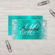 Silver Glitter Shiny Turquoise Foil Fancy Monogram Business Card