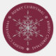 Silver Glitter Snowflake Merry Christmas Burgundy Classic Round Sticker