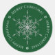 Silver Glitter Snowflake Merry Christmas Green Classic Round Sticker