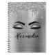 Silver Glitter Sparkle Eyelashes Monogram Name Notebook