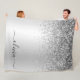 Silver Glitter Sparkle Metal Monogram Name Fleece Blanket
