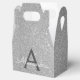 Silver Faux Glitter and Sparkle Elegant Gift Favour Box. This Gift Box can be customised to include your initial and first name and makes a great birthday, bachelorette party, bridal shower or baby shower gift box.