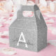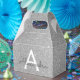 Silver Faux Glitter and Sparkle Elegant Gift Favour Box. This Gift Box can be customised to include your initial and first name and makes a great birthday, bachelorette party, bridal shower or baby shower gift box.