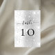 A faux silver background with faux glitter, sparkles. Personalise and add your table numbers. Add your numbers one by one.