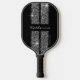 Personalised Custom-Designed Pickleball Paddle with Dark Gunmetal Silver Glitter Sport Racing Stripes and chic calligraphy script signature font name on a black background, with optional phone number contact information. Change the font and background colour to your favourites and never lose your spot at the court or confuse your paddle with anyone else's again! You will be the envy of the tournament with this chic and unique paddle design.