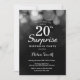 Silver Glitter Surprise 20th Birthday Invitation Card. Adult Birthday. Silver Glitter Bokeh Background. 13th 15th 16th 18th 10th 21st 30th 40th 50th 60th 70th 80th 90th 100th. Any Age. For further customisation, please click the "Customise it" button and use our design tool to modify this template.