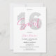 Cool silver grey glitter ombre sparkles girly elegant Sweet 16 birthday party invitation , with a cool trendy brush script font.