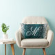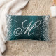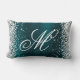 Silver Glitter Teal Blue Foil Fancy Monogrammed Lumbar Cushion