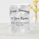Celebrate a 25th silver anniversary with this card, featuring the couple's names and dates on a silver, glitter texture background.