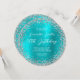 The design features a sparkly silver glitter overlay against a coordinating faux shiny metallic bright turquoise blue brushed metal foil graphic image.