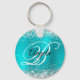 Silver Glitter Turquoise Blue Foil Fancy Monogram Key Ring