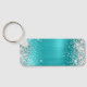 Silver Glitter Turquoise Blue Foil Fancy Monogram Key Ring