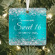 Custom silver glitter and turquoise blue gradient foil Sweet Sixteen square metal ornament for your daughter's milestone celebration.