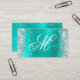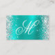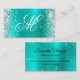 Silver Glitter Turquoise Foil Fancy Monogrammed Business Card