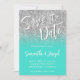 Silver grey and bright turquoise glitter gradient colour block design for your save the dates.