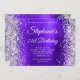 Silver Glitter Violet Monogram 21st Birthday Invitation