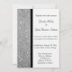 A beautiful invitation for any style wedding. It features a white background on the right side with a graphic of silver glitter on the left. A black stripe separates the sides. You customise the text.