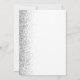 The left-hand edge of this elegant modern wedding save the date card features a silver faux glitter border. The customisable text combines grey handwriting, copperplate and italic fonts on a white bluebackground. The reverse side features a matching white and silver design.