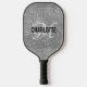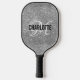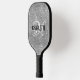 Stylish silver glitter white script monogram black name women's pickleball paddle. Personalize with your name and initial.