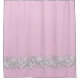 On this stylish shower curtain are glittery glam silver edging on pink. Glitzy glam