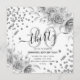 Elegant Glam Silver Floral Glitter 30th Birthday Script invitation template featuring flower arrangement, glitter confetti and modern typography script.