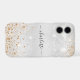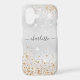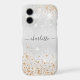 A faux silver metallic looking background, decorated with faux gold and silver glitter dust. Personalise and add your name. The name is written with a modern and trendy hand lettered style script with swashes.