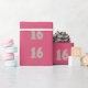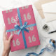 Celebrate sweet sixteen birthday with this number 16 pattern that is painted in silver and trimmed in gold, and is repeated on a pattern on hot pink wrapping paper.