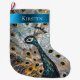 Silver Gold Teal Blue Peacock Christmas Name Large Christmas Stocking