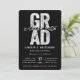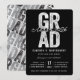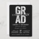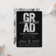 GRAD In Faux Silver Foil Bold Typography On Black Background, Class of 2024/2025, Chic and Stylish Graduation Party Invitation Card.