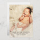 Minimalist Design! What fun about this baby birth announcement is that we add a © copyright mark before the proud parents' names and a @ before baby's birthplace:) Baby's photo is placed behind a silver gradient cover ( see image on the back of the card ) to match any photo colours and let the text stand out. Please replace the sample photo with your own photo and personalise or customise the text further to meet your needs.