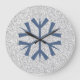 Silver Gray Glitter With Blue Snowflake Large Clock