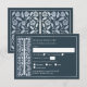 Celebrate your special day with these royal medieval sword wedding RSVP cards against a gray background. You can customize this further by clicking on the "PERSONALIZE" button. PLEASE NOTE: The silver on this item is NOT real foil and is printed in flat colors