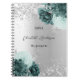 Faux silver looking background decorated with green florals, flowers, and faux silver glitter, sparkles. Personalise and a year, name and a title/text
