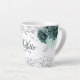 A white background decorated with green florals, flowers and faux silver glitter, sparkles. Personalise and add your monogram initials, first name and full name.