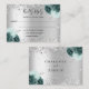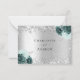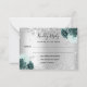 A faux silver metallic looking background, decorated with sparkling faux glitter and green florals. Personalise and add the reply by date and your names.