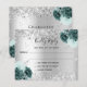 Silver green flowers glitter wedding RSVP card