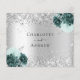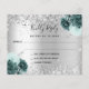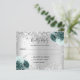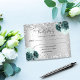 A faux silver metallic looking background, decorated with sparkling faux glitter and green florals. Personalise and add the reply by date and your names.